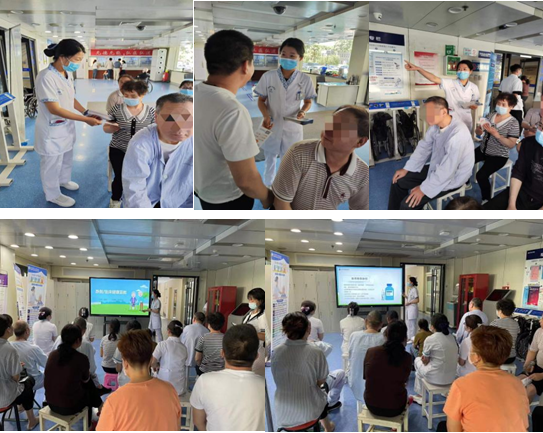 活动分两部分展开。首先,王文琰和李蕊进入病房内,向家属及清醒患者进行活动宣传,介绍活动流程及目的,同时邀请患者及家属在大厅参加活动。随后在病区大厅,吉利华进行防跌倒/坠床健康知识科普宣传,讲述跌倒/坠床定义、高危人群、危害及预防措施,面对面、手把手指导患者进行日常活动。活动期间,护患积极互动,气氛高涨。病友及家属纷纷表示学有所获,安全意识得到极大提升。