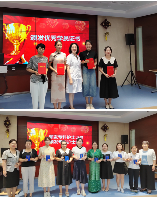 圆满落幕。护理部刘晓梅副主任、产科负责人吴桂清主任、产科一病区胡盈主任、临床部总护士长、相关科室护士长和35名学员参加了闭幕式。产科王艳妮副护士长主持会议。