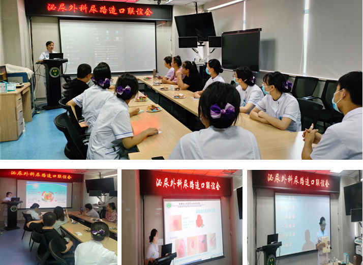 活动由泌尿外科总护士长赵文彩主持,强调造口护理是一项重要的护理工作,需要专业护理人员的科学护理和细心指导;同时还需要家庭及社会的关心与支持。国际造口治疗师郑灿以“尿路造口患者居家护理”为题,从造口的观察、患者饮食、衣着、活动锻炼、工作、旅行等方面进行了详细讲解。国际造口治疗师胡继平讲解了造口出血、皮肤黏膜分离、尿酸盐结晶、刺激性皮炎等造口及周围并发症的识别与处理。伤口治疗师林静讲解了造口袋ARC更换流程,并进行了现场演示与指导。最后,大家进行了经验分享与交流。