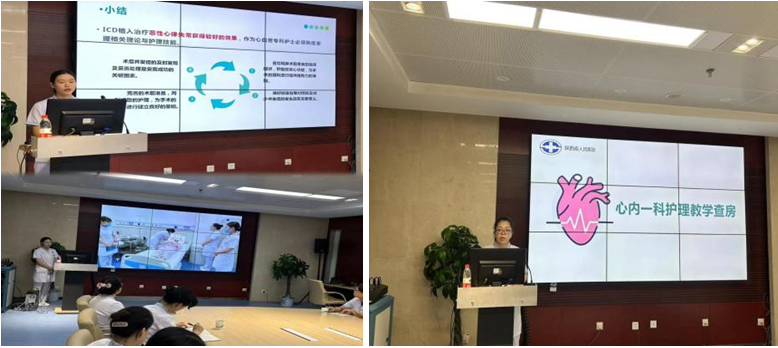 查房采用视频查体与PPT相结合的汇报模式,由主管护师刘琼主持,护士赵亚茹对病例进行详细介绍及查体,介绍了ICD定义、传统类型、适应症、术前术后护理、现存护理问题、护理措施以及健康指导。随后展开热烈讨论,包括术后患者服用抗凝药物时需要观察隐性出血和显性出血的必要性,随身携带起搏器指导卡的重要性,ICD的工作原理及运动指导,查体过程中应注意改进的细节,针对该患者的个性化健康指导等,并提问了护理ICD术后患者的难点和重点。石爽护士长做出详细解答,分享了关于ICD的延伸知识,并进行了总结。