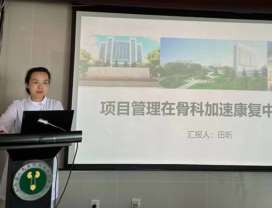 本次活动旨在分享交流,产科陈鑫、胸外科黄杏、肝胆科陈曦、骨科杜少蕊老师通过实际案例详细解析分享了加速康复护理工作在相关专业领域的经验,并探讨了优化患者治疗和康复速度的新疗法和方案。副组长田昕就项目管理在骨科领域的应用进行授课,强调了如何有效地规划、执行和监督康复项目,以帮助骨科患者康复。