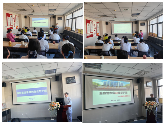 本次培训由神经内二科副护士长潘雅娟组织安排,刘娟副护士长、祝婷副护士长及杜媛媛副护士长主持,神经内一科李奔卉、神经内二科夏莹及神经外科马露露三位老师分别以《脑卒中失语症患者的康复技术实践》《神经重症患者的急救与处理》《脑血管疾病的康复护理~康复锻炼篇》为题进行了详细讲解。授课过程认真细致,内容详尽实用,讲解清晰易懂,培训效果显著,参会者受益匪浅。