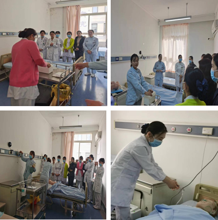 会议最后,技能小组成员现场培训双人心肺复苏、简易呼吸气囊、吸痰、微量泵等操作,将其余成员分为四组进行轮转学习,做到全员掌握。