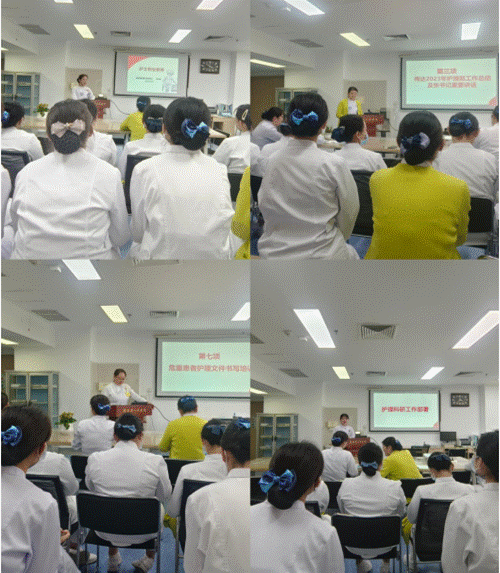 会上,朱秀梅护士长就护士职业素养进行培训,要求提高护士自身专业性和职业素养,提升综合服务质量。马小妮副护士长对2024年护理工作要点进行了详细解读,进行任务分工。梁妍护师就危重症患者文件书写规范进行培训,推进护士整体文件书写水平提升。刘晏兵副护士长就科研工作进行了目标任务分解。