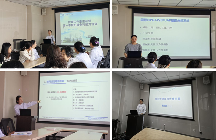 会上,张璐护士从压力性损伤的定义与分期以及压力性损伤上报流程做了详细的讲解,提高了护理人员对不良事件与压力性损伤的上报流程的熟悉程度。马钰护士从科研文献综述的概念、为什么写文献综述、如何设定综述框架等方面进行了论文书写方面的指导培训。余磊副护士长从常见护理收费项目问题出发,对医保可疑违规项目进行了讲解,强调“早发现,早处理”的先行处理方式,确保科室医保项目合法合规。