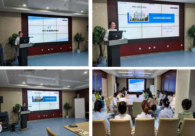 高质量发展深化年,为进一步加强老年护理人才培养,刘凌华总护士长主要围绕老年慢病管理MDT模式的开展与实施进行授课,介绍了老年慢病管理MDT模式的国内外发展现状、开展的形式等相关内容,让大家受益匪浅。柴莉莉副护士长讲授了老年认知评估的流程与注意事项,并与现场人员配合演示展示了老年认知评估操作中的注意事项,让大家更加全面地了解到老年认知评估工作是为老年患者服务的一项重要、细致的工作。
