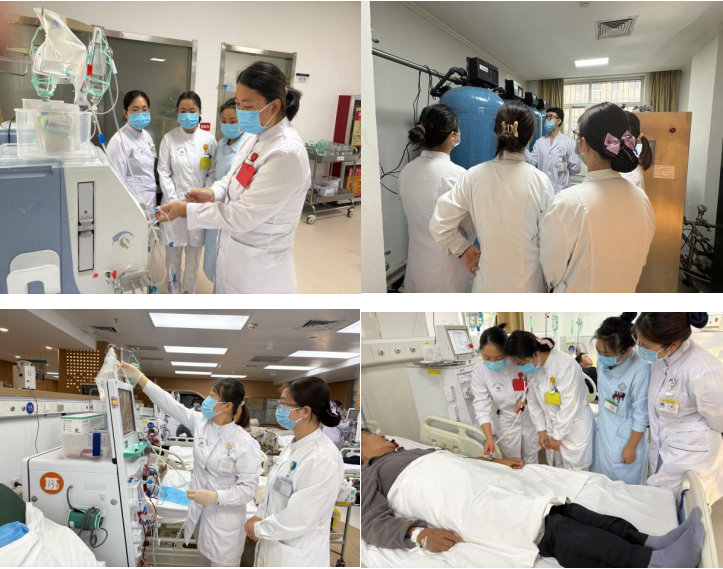 此次实践培训历时两周,培训学员共26名。主要涵盖了三个实践板块,肾脏内科一病区CRRT上下机操作流程、血浆置换技术操作流程、免疫吸附技术操作流程及报警模拟处理等;肾脏内科二病区腹膜透析换药技术及腹膜透析置管术后的护理等;肾脏内科血透中心血液透析技术各项操作,如各种透析机型的上下机流程、CVC导管的护理技术、自体动静脉内瘘与移植物内瘘的评估、各种透析机型的废液排放等,确保学员能够全面了解并掌握血液净化治疗的相关临床操作。除此之外,带教老师特别强调了血液透析护理过程中的安全意识、人文关怀和团队协作等方面的培养。结合临床实际案例,引导护士们分析问题、解决问题,提高了护士们的临床思维能力和应变能力。