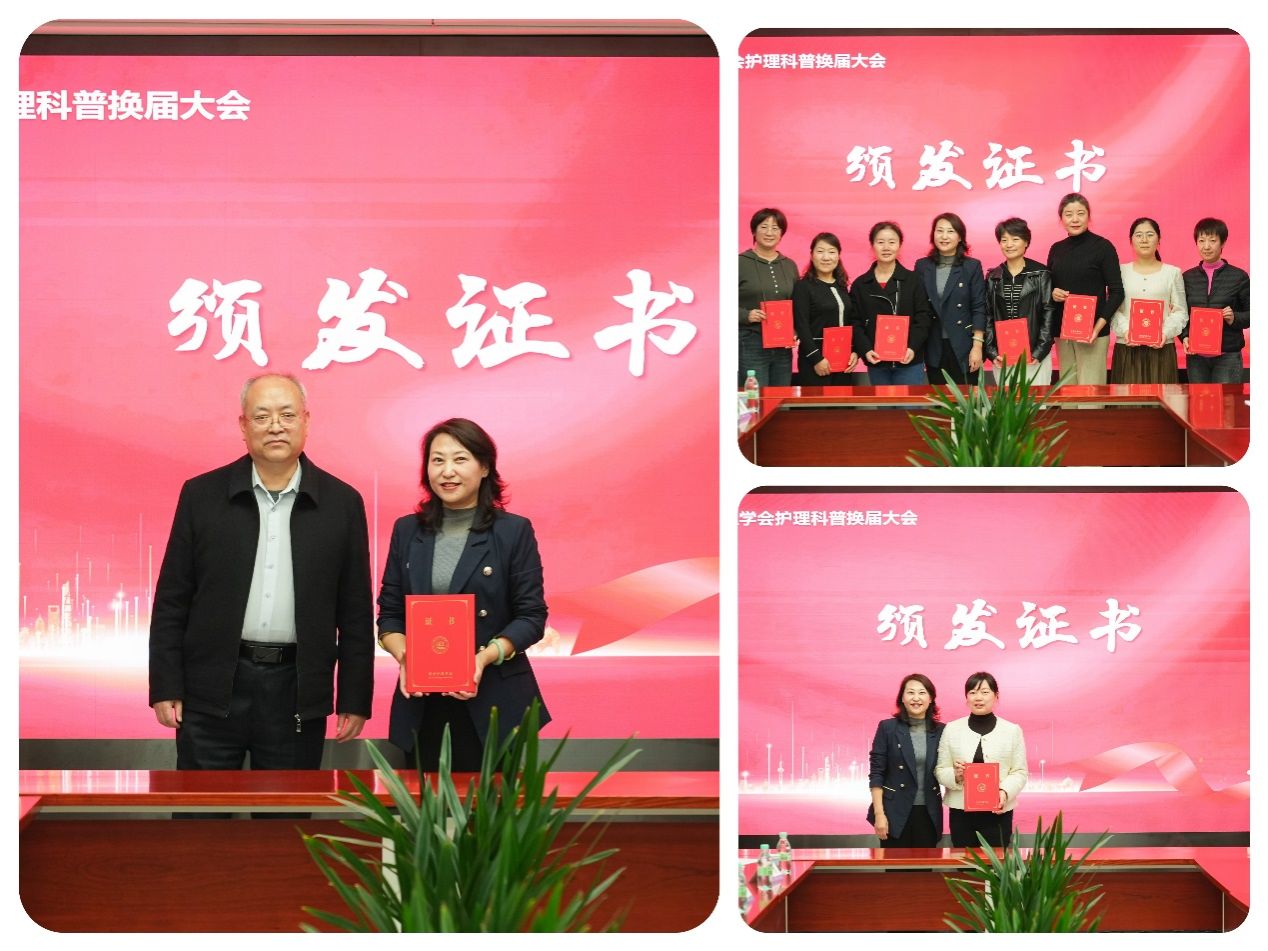 第三临床部张艳总护士长当选为新一届护理科普专业委员会主任委员,并由参会领导向副主委以上人员及秘书颁发证书。
