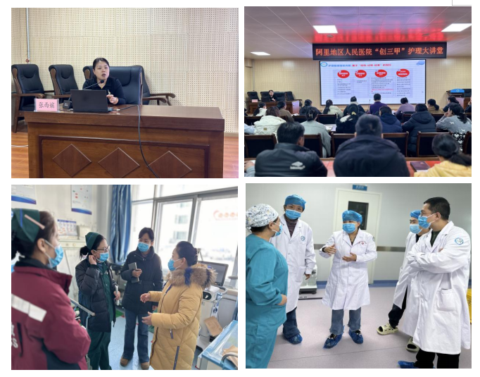 援助期间,张西嫔护士长克服重上高原的身体不适,在3月3日到达阿里地区人民医院后,全程参与该院“三甲”创建冲刺动员部署会及实地督导工作。3月7日动员部署会上,她结合自身经验,围绕护理质量管理、等级评审的护理条款要点等内容进行专题辅导,为全院干部职工厘清思路、明确方向。会后与其他专家深入临床科室,开展“面对面”督导,针对“三乙”复审、“三甲”初审中发现的问题分别建立台账清单,提出整改建议,并协助建立长效机制,助力医院补短板、强根基。