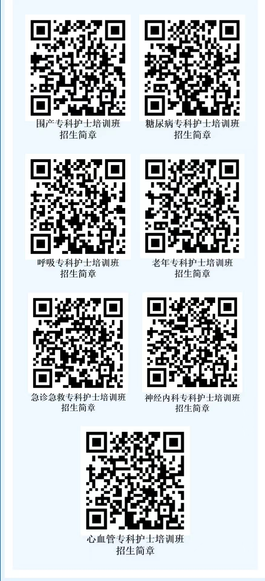 2024年欧美视频 拟举办省级急诊急救、神经内科、心血管、糖尿病、围产、呼吸、老年护理7个专业的专科护士培训班,预计招收300余人,欢迎广大护理同仁扫描文末二维码进行报名。