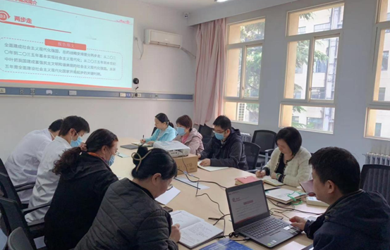 春云开序,新程浩荡。4月25日,段降龙院长助理在教学楼3楼会议室,带领教学处全体人员集中学习了党的二十大会议精神的部分重要内容。此次学习,段助理以“未来怎么干?——从二十大报告中解读关键词”作为切入点展开;以推进医院内涵式、高质量发展为目标;将二十大会议精神结合实际,由浅入深,娓娓道来。教学处全体职工及三位教学专干参加。