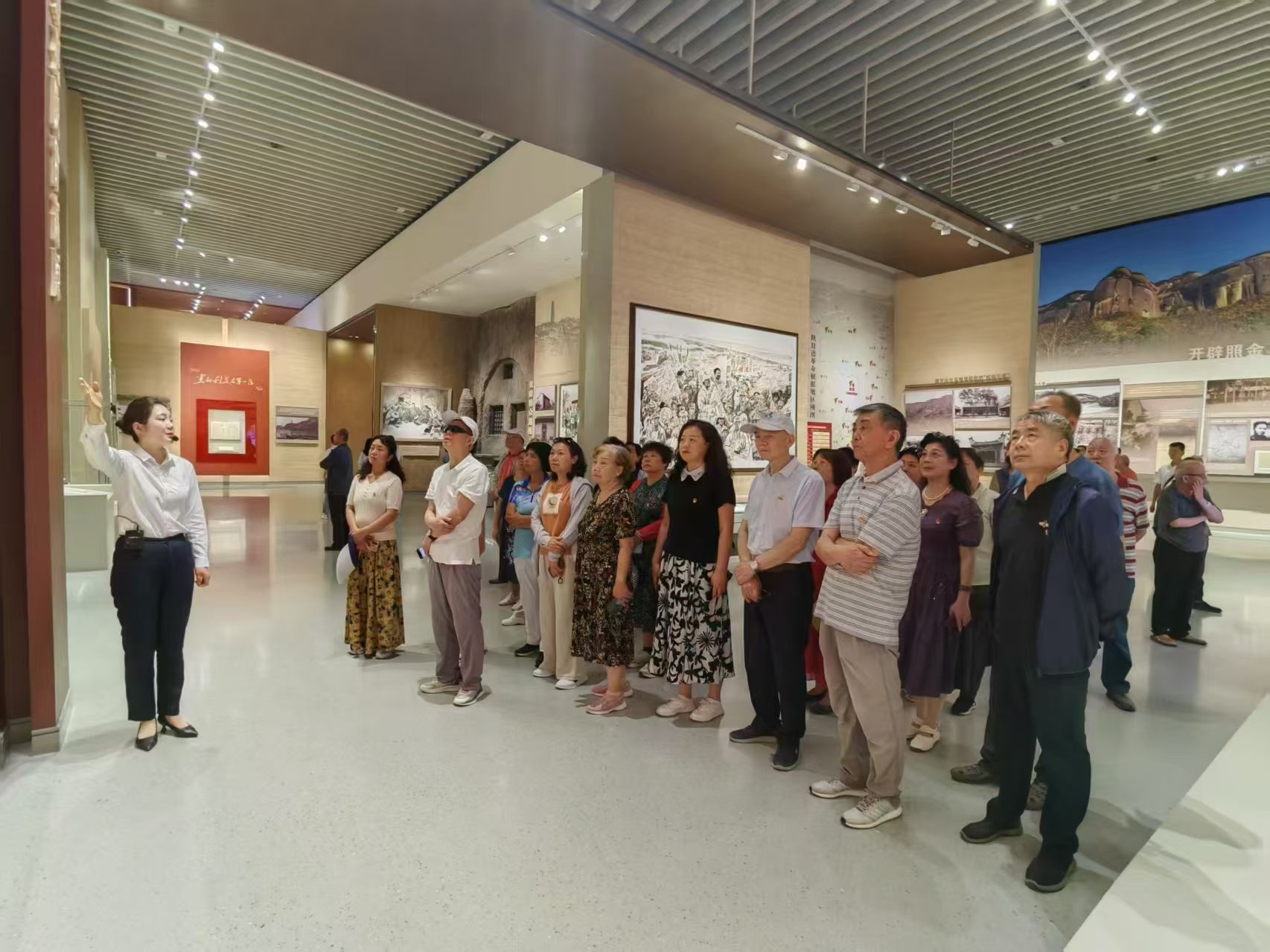 首先,大家来到习仲勋陵园,怀着无比崇敬的心情,瞻仰了习仲勋同志雕像,鞠躬致敬,深切缅怀这位伟大的无产阶级革命家,表达了无尽追思和崇高敬意。随后,党员们走进关中革命纪念馆。该馆于今年5月24日正式开馆,展陈系统呈现了关中地区人民群众在中国共产党的领导下英勇革命的伟大历程。大家认真聆听讲解,驻足凝视馆内陈列的珍贵文物和历史资料,仿佛穿越时空,回到了那段波澜壮阔的革命岁月,深刻感受到了革命先辈们为民族解放和人民幸福,不惜抛头颅、洒热血的坚定信念和无私奉献精神。