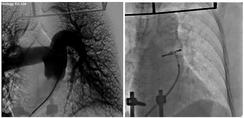 心血管病院特聘专家南京医科大学附属南京医院陈绍良教授团队讨论后,决定为该患者采取该领域前沿的介入治疗手段——经皮肺动脉去神经术(PADN)。在完成了充分、周全的术前准备工作后,吴皓宇副主任团队成功应用了我国原创的PADN肺动脉射频消融导管,对患者肺动脉交感神经消融靶点进行“点对点”精准消融。整个手术过程患者无明显不适,术中各监测指标平稳。右心导管检查显示,患者肺动脉收缩压由术前的91mmHg降至术后即刻的72mmHg,预期中远期肺动脉压力将进一步改善。