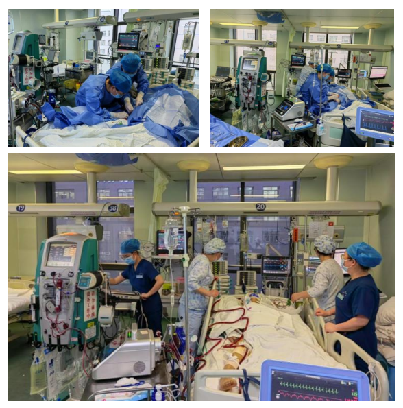 患者床旁气氛紧张而有序。以史小娟医生为首的治疗小组有条不紊地建立血管通路,随后顺利的断流、连接管路,并实时监测心脏功能、氧和变化,重症医学科医生精准调整药物剂量……每一步都关乎生死,每一秒都至关重要。半个小时后,VAV-ECMO成功运转!患者血压趋于稳定。看着监护仪上逐渐平稳的数据,所有参与救治的医护人员都长舒了一口气——这场与死神的较量,我们暂时领先!
