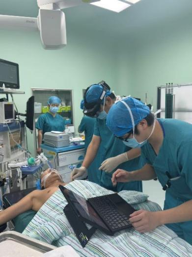 近日,胸外科主任豆亚伟团队采用人工智能+增强显示(AI+AR)导航技术成功完成一例术中肺结节定位+胸腔镜微创肺切除手术。