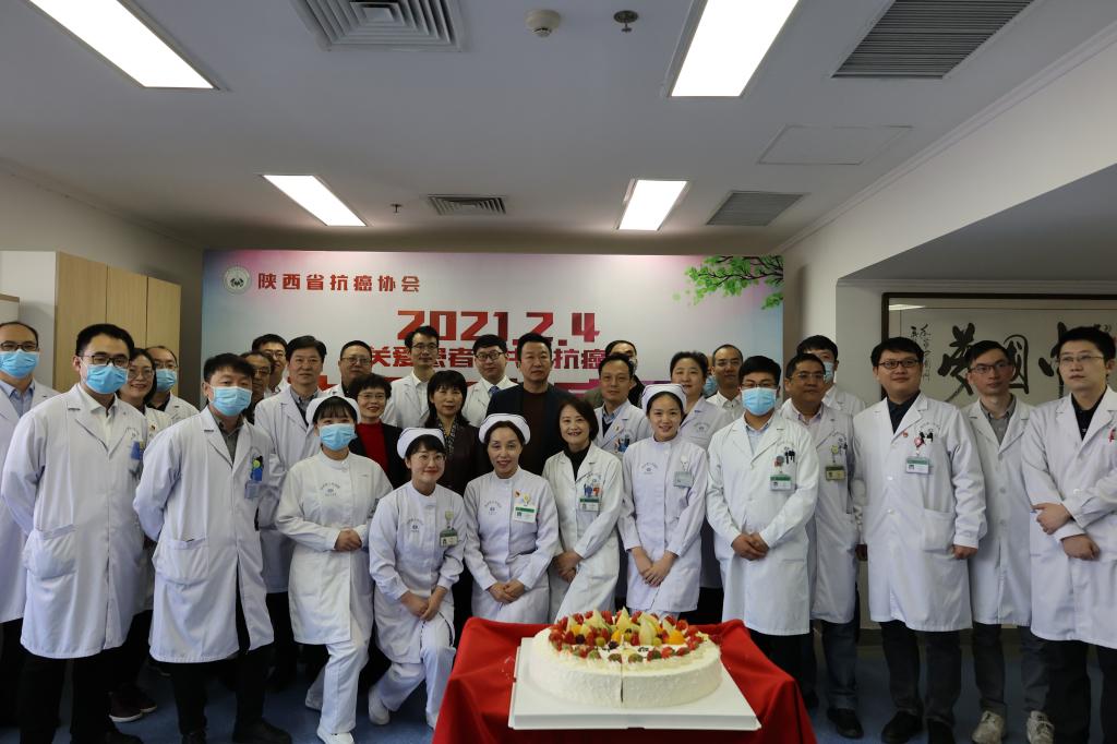 院长、陕西省抗癌协会理事长宋张俊教授致辞并宣布启动2021世界癌症日科普宣传系列活动,肿瘤病院常务副院长、肿瘤外科李建辉主任,肿瘤病院副院长、放疗科王青主任和肿瘤内科白俊主任分别致辞,随后,宋张俊院长、张玉莲副院长分别为肿瘤病院“陕西省乳腺疾病临床医学研究中心”和肿瘤外科“陕西省青年文明号”授牌。