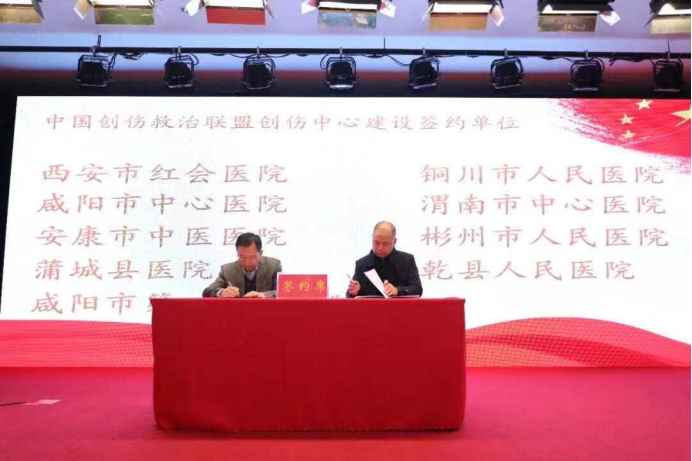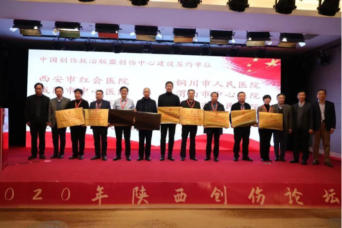 王天兵秘书长代表中国创伤救治联盟与陕西省创伤救治联盟新晋的创伤中心建设单位进行签约,并率领中国创伤救治联盟的专家给9家单位授牌,这9家单位分别是:西安市红会医院、咸阳市中心医院、咸阳市第一人民医院、铜川市人民医院、渭南市中心医院、安康市中医医院、乾县人民医院、蒲城县医院、彬州市人民医院。接下来,与会专家给予新晋的24家中国创伤救治联盟会员单位颁发证书。