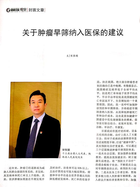宋张骏院长,作为一名具有丰富医院管理经验的医院管理者、肿瘤治疗方面的专家,其《关于肿瘤早筛纳入医保的建议》在专栏首期刊登。