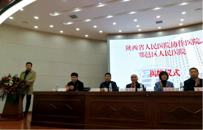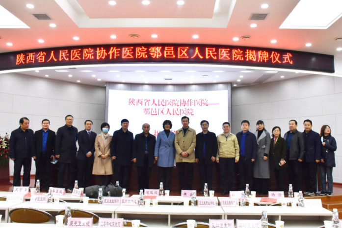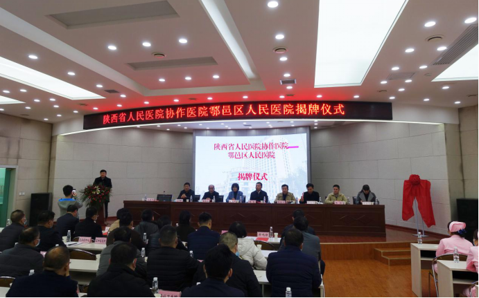 宋张骏院长、米涛副院长、医务处段降龙处长、基层医疗服务部石斌娅主任,与鄠邑区区长李化、副区长谢永平、人大副主任王玉婷、政协副主席张永阳,及区医疗保障局局长黄会云、卫健局局长马彦平、区人民医院领导、科室主任等200余人,相聚终南山下鄠邑区人民医院,举行热烈而友好的协作医院揭牌仪式。