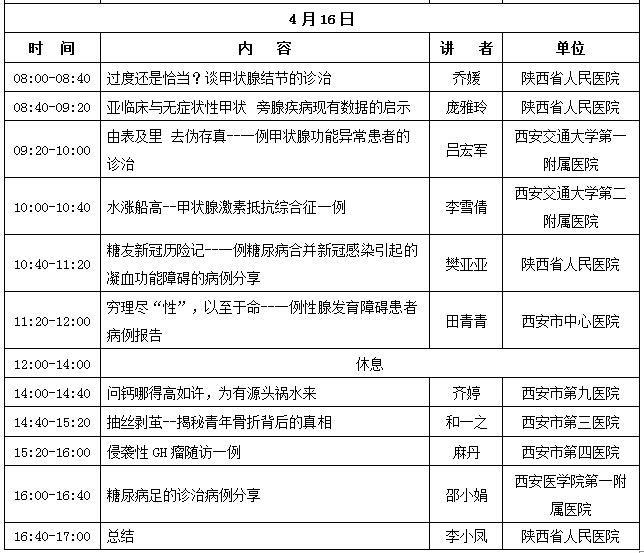 定于2023年4月15-16日在陕西西安举办《内分泌代谢疾病诊治新进展学习班》,旨在让学员掌握内分泌代谢疾病诊治技术的同时,熟悉、掌握内分泌代谢疾病新理论、新技术、新进展。培训以理论授课为主,采取线下授课的模式。