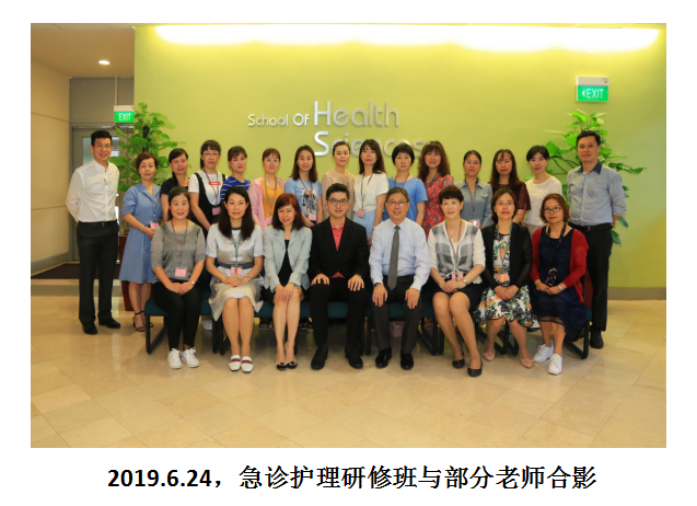 本次培训主要内容有急诊急救及内外科护理理论学习,急救技能、专科技能及场景模拟的临床实践和参观交流,涵盖急诊急救、内外科疾病的诊断、治疗、手术、护理、康复、健康指导及出院随访。课程安排科学紧凑合理,授课老师严谨认真幽默风趣,授课方式灵活多样便于记忆。同时参观了新加坡医疗保健促进局、盛港医院及泰和观社区医院。医院设施、仪器设备先进,制度规范完善落实有效,保护患者隐私,以病人的安全管理为中心。社区承担了大量的慢病管理及康复工作,设备齐全、管理规范。新加坡护理教育和在职医护人员的培训模式值得借鉴,学校的操作实践培训室完全模拟病房,和医院的设施、仪器、设备完全一样,不仅培训动手操作的能力,学生的应急应变能力和评判性思维能力,使学生在进入医院后能很快适应病区环境、进入工作状态。