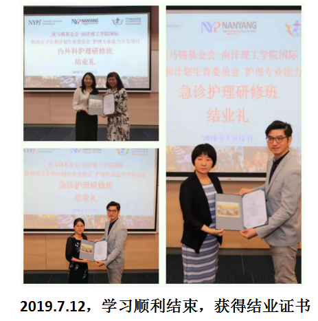 内分泌科张艳、急诊外科苏晓丽、急诊内科曹钏宏三人完成省卫健委和淡马锡基金会联合举办,新加坡南洋理工学院承办的陕西省护理管理与专业人员专能开发培训项目。