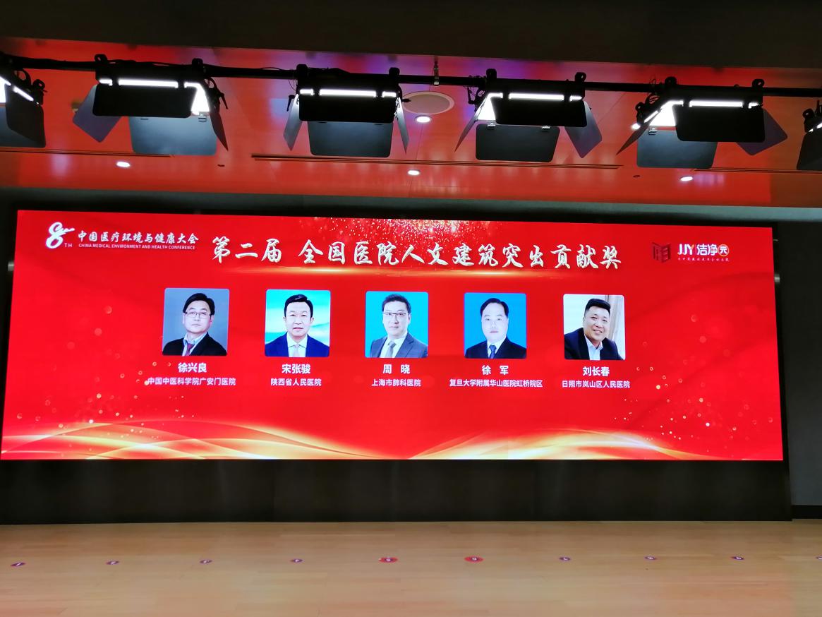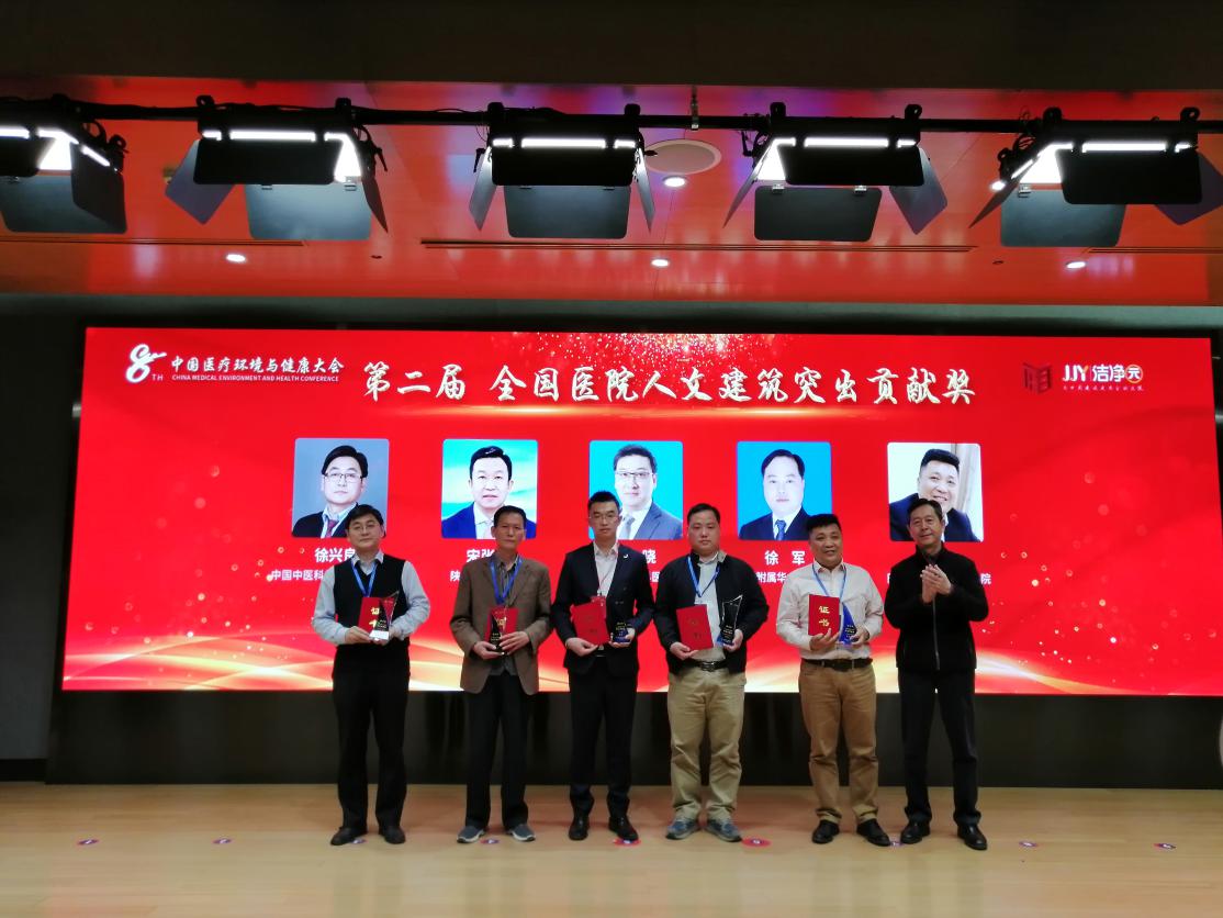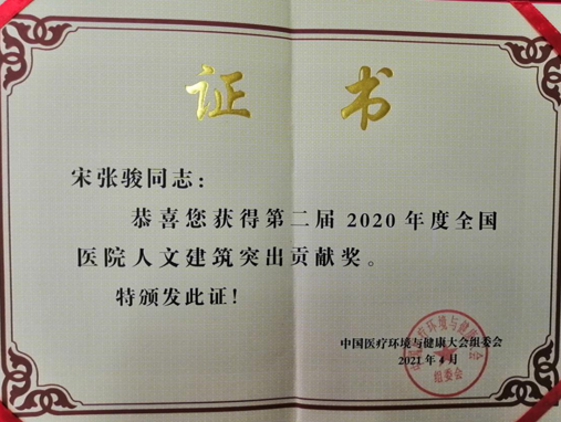 2021年4月16日-18日“第八届中国医疗环境与健康大会”在北京召开。大会同步举行了“金质杯”评选活动颁奖典礼,欧美视频 被评选为“金质杯”第二届“全国医院人文建筑示范基地”,宋张骏院长荣获“全国医院人文建筑突出贡献奖”。总务处相关管理人员参加大会并进行培训交流与学习。