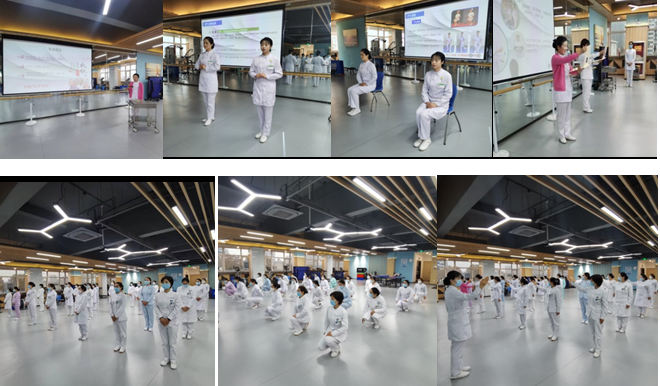 当天下午,对学员进行礼仪培训。介绍了医院礼仪小组组成和发展、礼仪的定义、仪容仪表、行为礼仪以及礼仪在护理工作中的重要性,现场演示学习了基本站姿、标准站姿、沟通站姿、蹲姿、坐姿、端治疗盘、推病例车、持病历夹、近距离指引及远距离指引等护士行为礼仪。