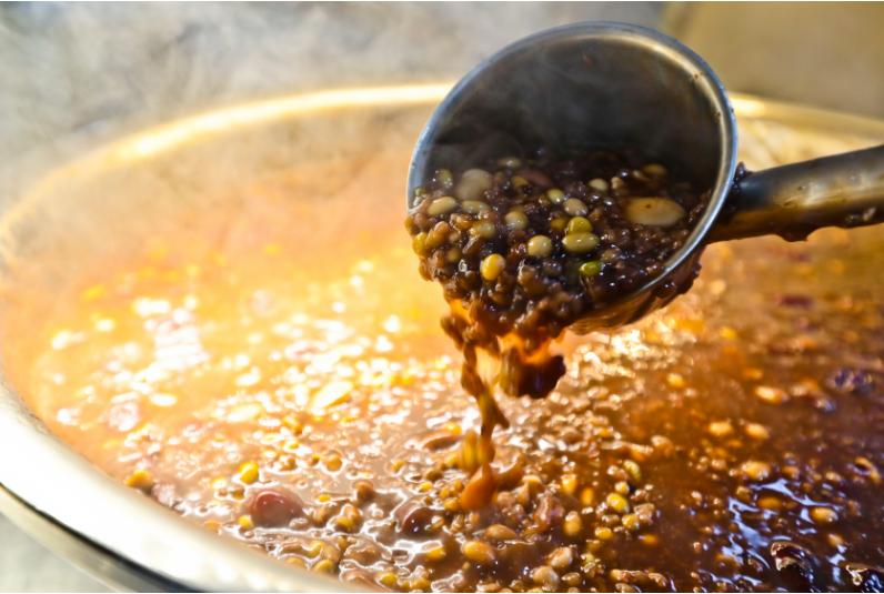 核桃、莲子、红枣、葡萄干......14样精挑细选的食材加上5小时的小火慢熬,不一会儿,卖相极佳的腊八粥就吸引了许多患者家属及职工,档口前排起了长队。