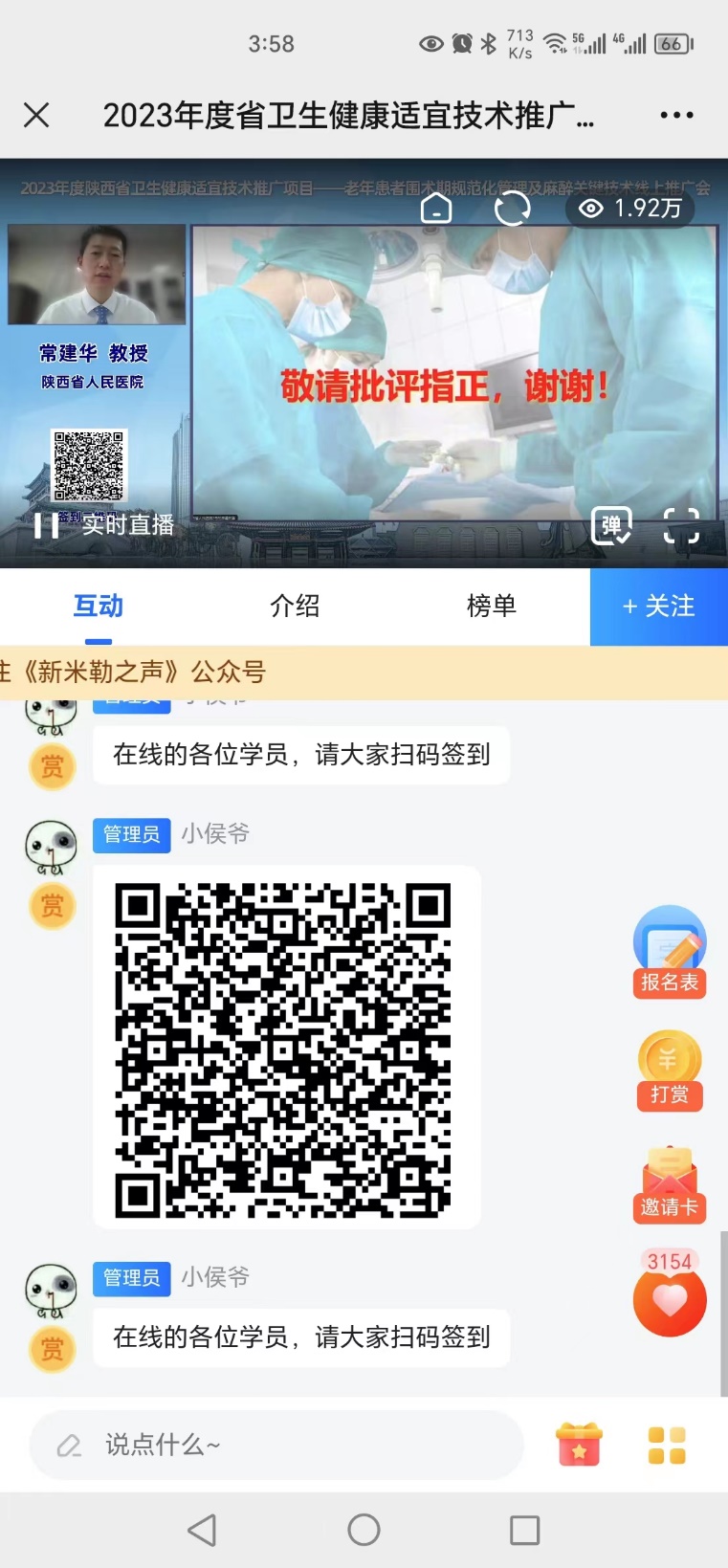 11月18日,由陕西省卫健委主办、欧美视频 麻醉科承办的”老年患者围术期规范化管理及麻醉关键技术”线上推广会成功举行,本次会议通过米勒之声麻醉平台在线直播,1.92万人次在线观看。