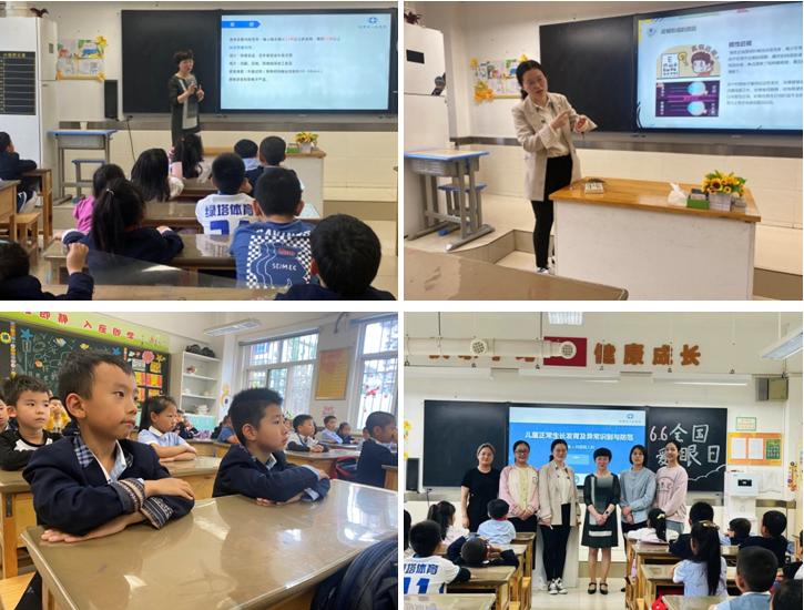 儿童的健康成长,需要学校、家庭、医院及社会的各方紧密协作,这也是我国健康事业发展规划中的重要内容。然而近年来,因各方面因素的综合影响,儿童生长发育相关疾病及儿童近视的发病率呈现增高的趋势,也成为了困扰千万家庭及学校的难题。为了更好地进行疾病预防,儿科主任“春风奶奶”精心为大南分校的学生们送去了关于生长发育方面的“营养大餐”,通俗易通的语言,耐心细致的讲解给孩子们的幼小心灵早早植入“健康的种子”,受到了小朋友们的喜爱!同时,眼科的曹颖主治医生为学生们娓娓讲解了如何健康用眼及预防近视眼的发生,在“全国爱眼日”到来之际,送给小朋友们又一“健康大礼”。