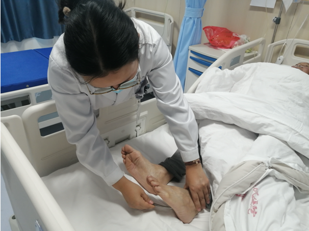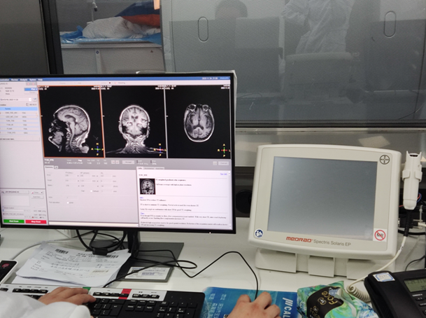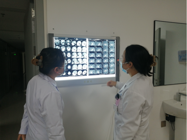 进一步治疗。接到急诊科电话后,西咸院区神经内科王一凡医生立即到位急诊,详细询问了患者的病情并进行了体格检查,根据患者病史及体格检查诊断考虑急性脑梗死,尚处于溶栓治疗时间窗,“时间就是生命、时间就是大脑”,遂立即开通卒中绿色通道。将患者情况汇报郭生龙副主任,同时与患者家属详细沟通溶栓治疗的获益及风险,家属同意溶栓治疗,并立即启动静脉溶栓程序。在多学科的严密配合下以最快的速度使用阿替普酶溶栓治疗,溶栓后患者语言功能迅速恢复。王一凡医生于病人床边严密地关注患者病情、生命体征及神经功能变化、有无躯体出血等情况,本例患者溶栓后无并发症发生,目前恢复良好。