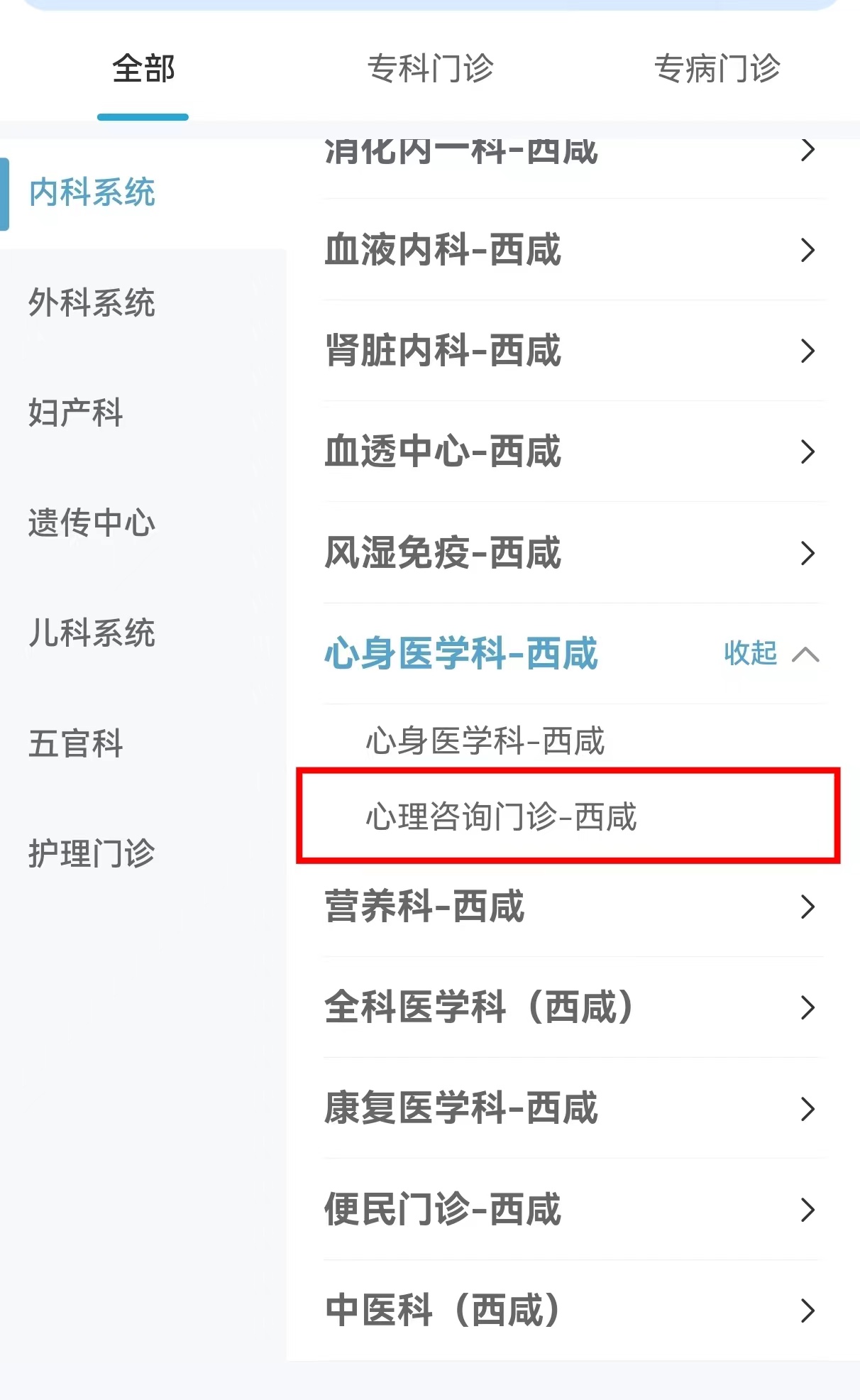 近年来,随着社会压力上升,心理健康问题逐渐受到社会的广泛关注,压力、焦虑、抑郁等心理问题已经成为影响现代人生活质量的重要因素。当前,我国常见精神障碍和心理行为问题人数逐年增多,为满足群众精神和心理健康就医需求,心理科在西咸院区开设心理咨询门诊。心理咨询门诊提供门诊心理评估、心理咨询和心理治疗服务,适用于有心理困扰但尚未发展至精神疾病的人进行心理治疗,不提供门诊诊断、门诊用药和医学证明书等服务。