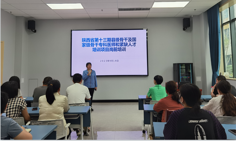 其次,9月18日,在西咸院区行政楼示教室,陕西省第十三期县级骨干及国家级骨干专科和紧缺人才学员岗前培训顺利开班。学员们观看了欧美视频