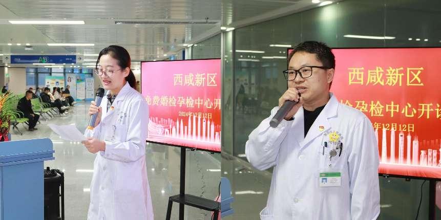 西咸院区设立免费婚检孕检中心。12月12日上午,西咸院区在门诊三楼举行婚检孕检中心揭牌仪式。段降龙副院长、西咸院区任柯院长助理、党政管理部、业务管理部、保障管理部负责人及产科、移植泌尿外科等相关科室代表参加揭牌仪式。产科党群副主任主持。