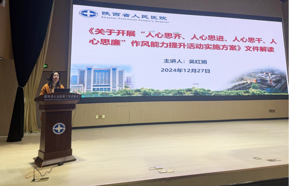 会上系统安排部署了“人心思齐、人心思进、人心思干、人心思廉”作风能力提升活动。西咸院区党总支书记、党政管理部主任吴红娟在动员讲话中强调,作风能力建设是医院持续发展的内在驱动力,要积极构建“决策层谋战略、管理层抓执行、基层强落实”的三级联动体系,并要求领导干部以身作则,通过“一级抓一级、一级带一级”的实干精神,推动全院形成目标一致、责任共担的协同发展局面。
