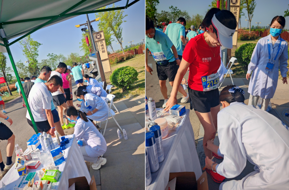 临时ICU共接诊20余人,7人稳定后转至定点医院。尤其在19公里医疗点,为500 余人名肌肉酸痛者喷散降温止痛药,10 余人擦伤、崴脚者处理伤口,为40余人次发放葡萄糖水和口服补液盐水。西咸院区医务人员凭借丰富的医疗经验和专业的急救技能,用汗水和坚守为参赛选手筑起生命防线。