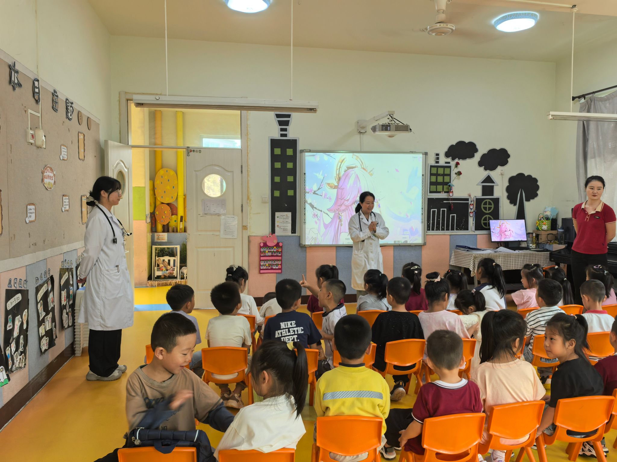 活动中,专家团队为家长逐一答疑解惑。课堂科普内容更是紧扣幼儿园师生的核心需求精心设计,结合动画案例生动讲解 “家庭常用药储存方法”“避免滥用抗生素” 等关键知识;围绕 “幼儿每日膳食搭配原则”“挑食偏食的危害与纠正方法” 展开健康营养饮食科普,提供切实可行的饮食方案;针对幼儿常见的烫伤、摔伤等意外伤害的防范及急救处理进行培训,精准填补了幼儿园健康照护中的知识空白。活动得到了幼儿园师生及家长的高度认可。