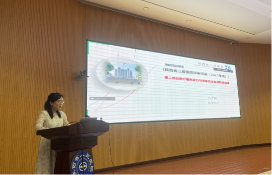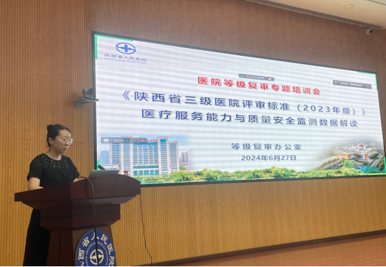 为扎实有效推进医院等级复审工作,加强医疗工作质量管理,进一步解读定量评价的评审工作模式,2023年6月27日下午,医院等级复审办公室邀请医务处数据中心苏亚妮主任做《三级医院评审标准实施细则(2023年版)》——医疗服务能力与质量安全监测数据解读的专题培训。各临床医技科室主任、护士长、复审联络员及数据填报员共计200余人参加培训。