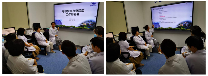等级复审工作,充分发挥评审在推动医院加强内部管理、提升医疗质量安全方面的作用,营造全面部署、全员行动、全力推动的工作氛围,医院全面开展等级复审自查活动。各处室、各科室全面对照等级评审细则,逐条梳理,建立台账,全力以赴力争再次高分通过三甲复审。