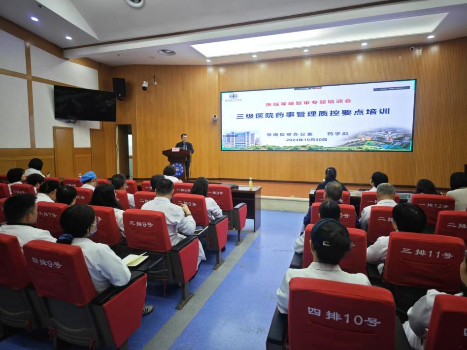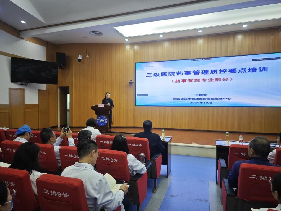 药事管理水平,进一步学习和贯彻《陕西省三级医院评审标准实施细则(2023年版)》中关于药事管理的相关条款与规定,2024年10月30日,医院等级复审办公室和药学部联合特邀空军军医大学西京医院药学部主任王婧雯教授为大家做“三级医院药事管理质控要点”的专题讲座。药学部张鹏主任主持。